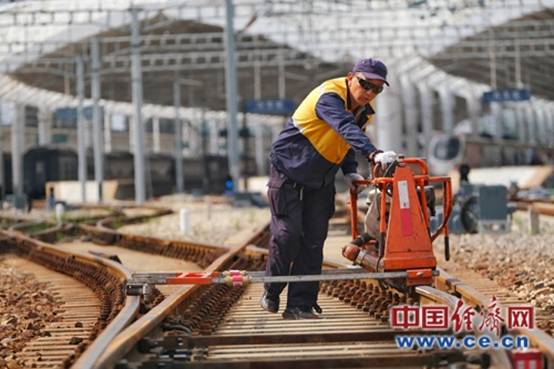 電務人員維修道岔轉轍機。中國經濟網記者佟明彪/攝