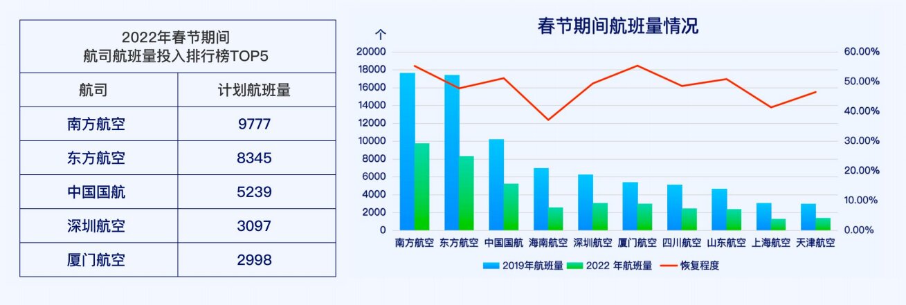 2022年春節假期期間,從1月30日到2月7日七天內計劃航班量預計超過 5萬,較2021年同期計劃航班量增長 3%。計劃可供座位數超過 780萬,與2021年同期計劃可供座位數減少 1.76%,民航運力保障與2021年同期基本持平。