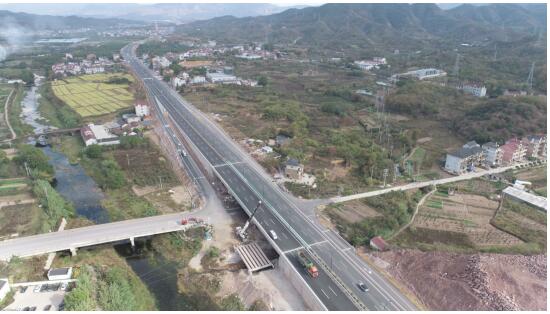 11月10日下午,按照既定計劃,浙江交通集團下屬交工宏途承建的蘭溪351國道1標翁月互通D匝道最后一片梁板順利就位。至此,項目全線梁板架設任務圓滿完成,向年底竣工通車的目標又邁出了堅實的一步。